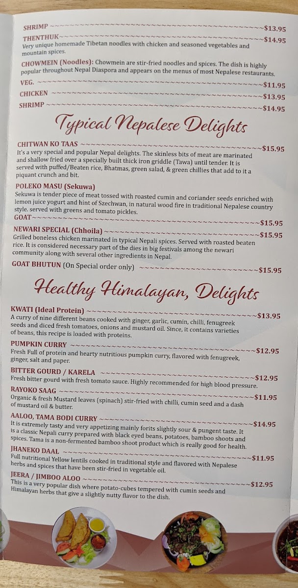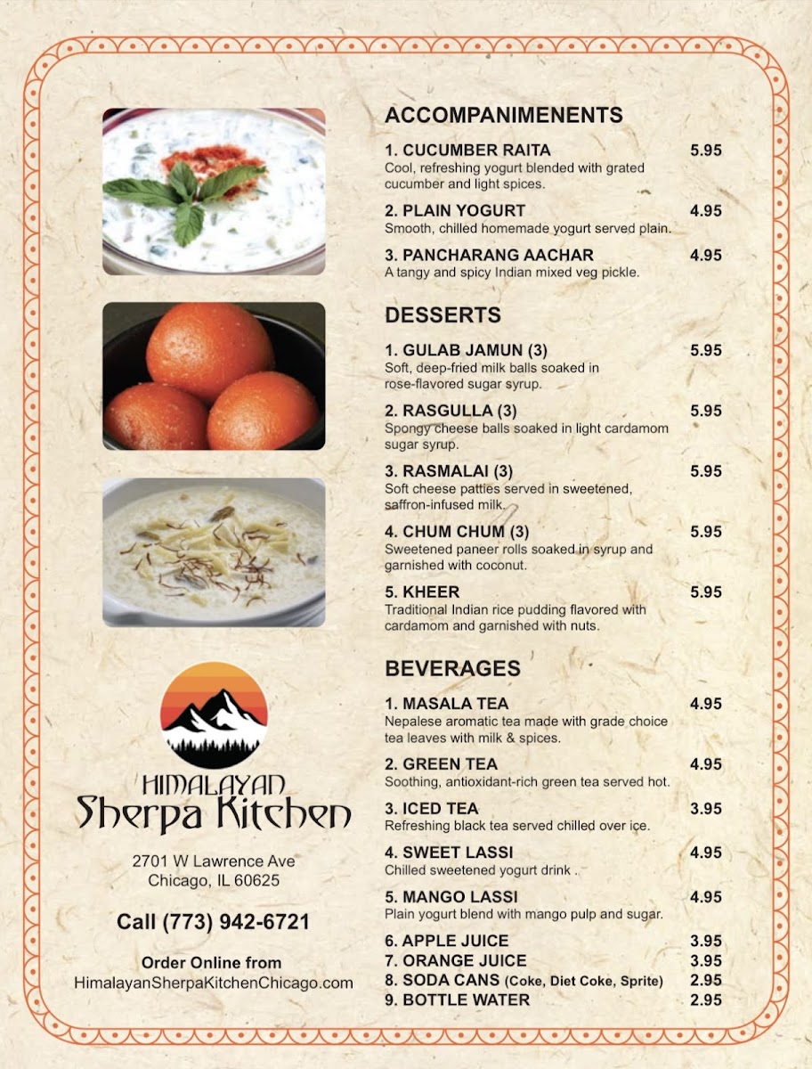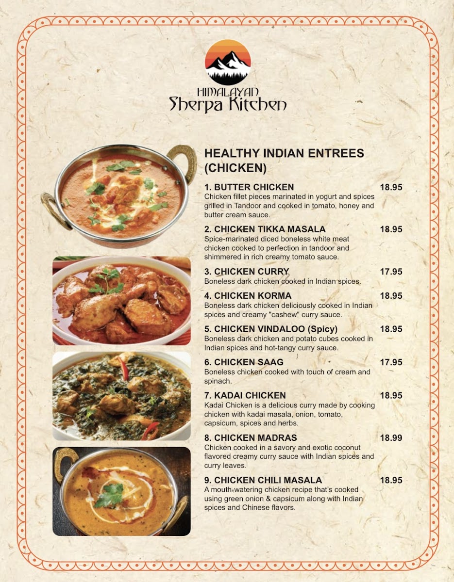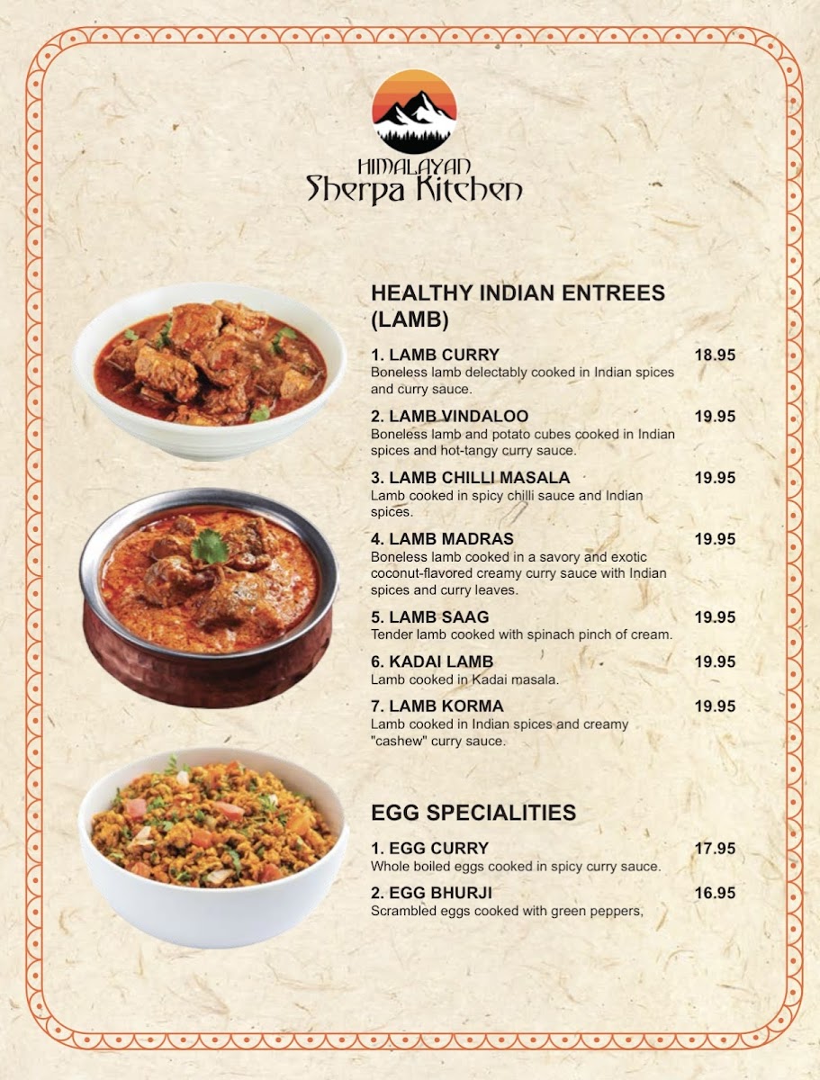 Step into the cozy and inviting world of Himalayan Sherpa Kitchen, where the rich flavors of Nepal and the Himalayan region come to life. The bold spices and aromatic herbs blend perfectly in every dish, offering a unique and unforgettable culinary experience. At the heart of the menu are authentic recipes passed down through generations, each dish designed to take your taste buds on a flavorful journey. From the warming stews to the perfectly spiced momos, there’s something for every craving. The Himalayan Sherpa Kitchen Menu features a variety of comforting meals, including vegetarian options, that highlight the best of traditional Himalayan cooking. Whether you’re enjoying a hearty bowl of dal bhat or indulging in a sweet dessert, each bite is made with love and passion. This is a place where every meal feels like a home-cooked family gathering, and it’s sure to become your go-to spot for flavorful and satisfying meals.